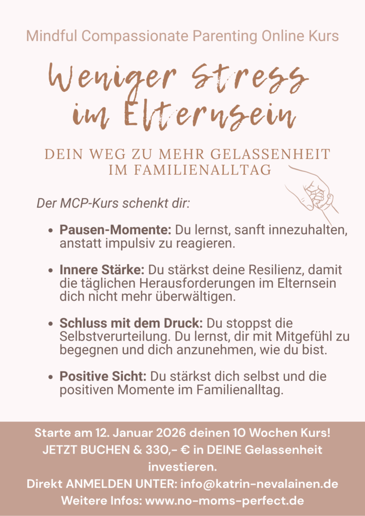 Das war ein turbulentes Jahr für mich. Hatte ich mich 2024 selbstständig gemacht und mal einfach so als vierfache Mama meinen festen Job gekündigt in der Firma, in der ich gerade 10 jähriges Jubiläum feiern sollte (Bin ich crazy?), so hatte sich 2025 leider nicht der erwünschte Erfolg eingestellt. Erfolg? Moment mal. Was meine ich damit eigentlich? Nachdem ich ein gutes Einkommen aufgegeben hatte, war es finanziell eine ziemliche Herausforderung mit der Selbstständigkeit. Ich investierte viel Zeit und Energie, saß sehr viel am Computer (auch abends noch), ging auf Netzwerktreffen, entwickelte Konzepte und Workshops, designte Flyer, besuchte Seminare , z.B. wie man eine Website erstellt, schrieb Texte zur Theorie hinter meinen Workshops, hing Werbung im Stadtteil auf, schrieb zahlreiche mögliche Kooperationspartner an, telefonierte mir die Finger wund, las unzählige Tipps zur Selbstständigkeit. und vieles mehr. Das alles machte ich aus einer unglaublichen Motivation heraus. Weil ich überzeugt davon war, dass es richtig und wichtig ist, Mütter aus der Stressfalle zu begleiten. Weil ich spürte, dass die Welt etwas weniger Konsum, Leistungsdruck und Schnelliglebigkeit brauchte, und stattdessen wieder mehr Lebendigkeit, Authentizität, Verbindung. Ich glaubte an mein Unternehmen, an die Idee hinter „No mom’s perfect“.