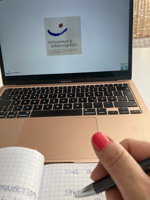 Mal wieder etwas, was ich aus dem Bauch heraus entschieden habe. Ich hatte schon ein halbes Jahr vorher über die Ausbildung zum Mindful Compassionate Parenting Teacher gelesen und gedacht: Mega Cool, aber dann nicht weiter verfolgt, da für mich die Woche in Vollzeit mit den Kindern nicht zu realisieren war. Aber ich wusste: diese Ausbildung passt zu mir und ergänzt mein neurobiologisches und soziologisches Wissen und meine No Moms Perfect Vision hervorragend durch Achtsamkeit und Selbstmitgefühl. Und da war es wieder. Dieses krasses Gefühl in mir: „Das ist es. Das ist richtig.“ Ich sprach mit meinem Freund darüber. Der meinte: „Wenn es dir so wichtig ist, dann kriegen wir das hin. Mach das. Melde dich an. Ich nehme mir Urlaub.“ Was? Genial. Danke für diese Unterstützung meiner Träume, Steggi! Und so meldetet ich mich an.