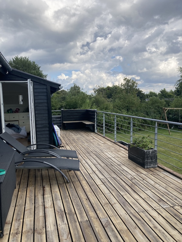 Da wir ja nun einen Hundewelpen hatten, waren die Überlegungen zu unserem Urlaub sehr begrenzt. Und die Wahl zum Sommerurlaub fiel sehr schnell auf Dänemark. Keine weite Strecke mit dem Auto. Denn Cody wurde im Auto leider immer schlecht. Aber Strandnähe und Privatsphäre. Wir mieteten uns also ein kleines Ferienhaus mit Hot Tube und Trampolin im Garten. Wie sich herausstellen sollte unsere Rettung, denn das Wetter war leider nicht so gut. Aber so hatten alle wenigsten trotz des schlechten Wetters ein „Badevergnügen“. Unser Ferienhaus lag auch noch super schön gelegen an einer alten Steilküste. Perfekt für uns, die wir eher wilde Natur als glattgebügelte Strandpromenaden lieben. Wir hatten fast den Strand für uns alleine, ab und zu mal ein paar Gäste, konnten den Hund zwischen Muscheln und Seetang den Strand entlang schnüffeln lassen und sogar die Kinder waren erstaunlich entspannt. Erstaunlich entspannt meint übrigens nur, dass nicht alle 10 Minuten, wie sonst üblich, ein Geschwisterstreit stattfindet, sondern nur alle 60 Minuten:-) Aber machen wir uns nichts vor. Alle die Kinder haben wissen, dass ein Urlaub mit Kindern nicht nur Friede, Freude, Eierkuchen ist.