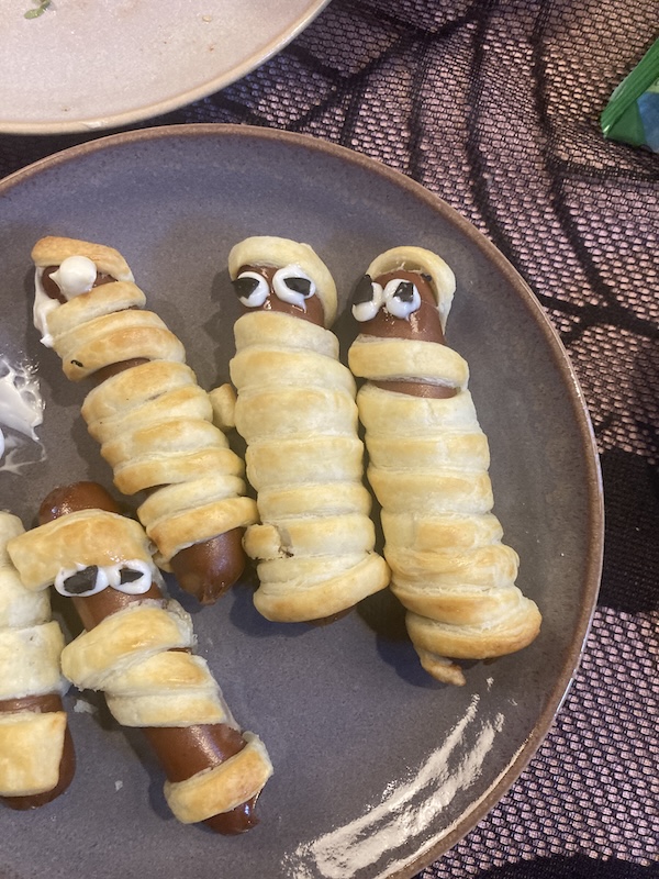 Wie lustig; ich habe dieses Jahr zu Halloween auch das erste Mal diese Würstchen in Teig gemacht. Sie haben genau gleich ausgeschaut 😉