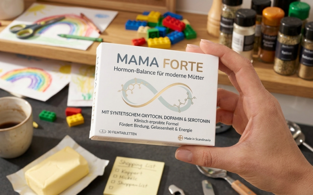 Stockholm/Berlin. In der Welt der Familienforschung überschlagen sich die Ereignisse. Ein internationales Team aus 15 Wissenschaftlicher*Innen hat nach jahrelanger, intensiver Arbeit eine bahnbrechende Entdeckung gemacht, die das Leben von Millionen Müttern grundlegend verändern könnte. Endlich gibt es die lang ersehnte Lösung für chronisch gestresste Mütter, zusammengefasst in einem einzigen Medikament: Mama Forte.